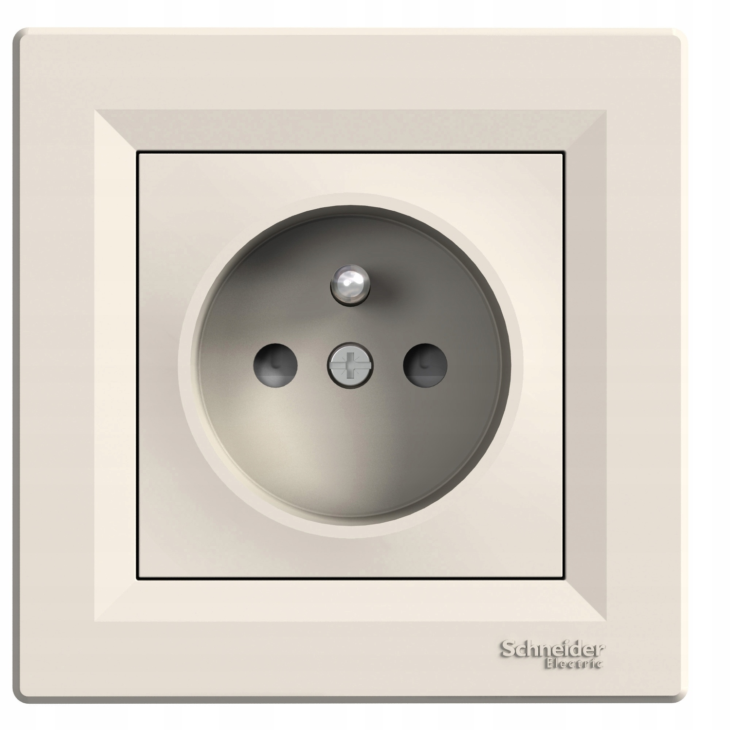 Розетка одинарная с заземлением и заслонками токопроводящих путей кремового цвета, серия Asfora, марка Schneider Electric, номер EPH2800223.