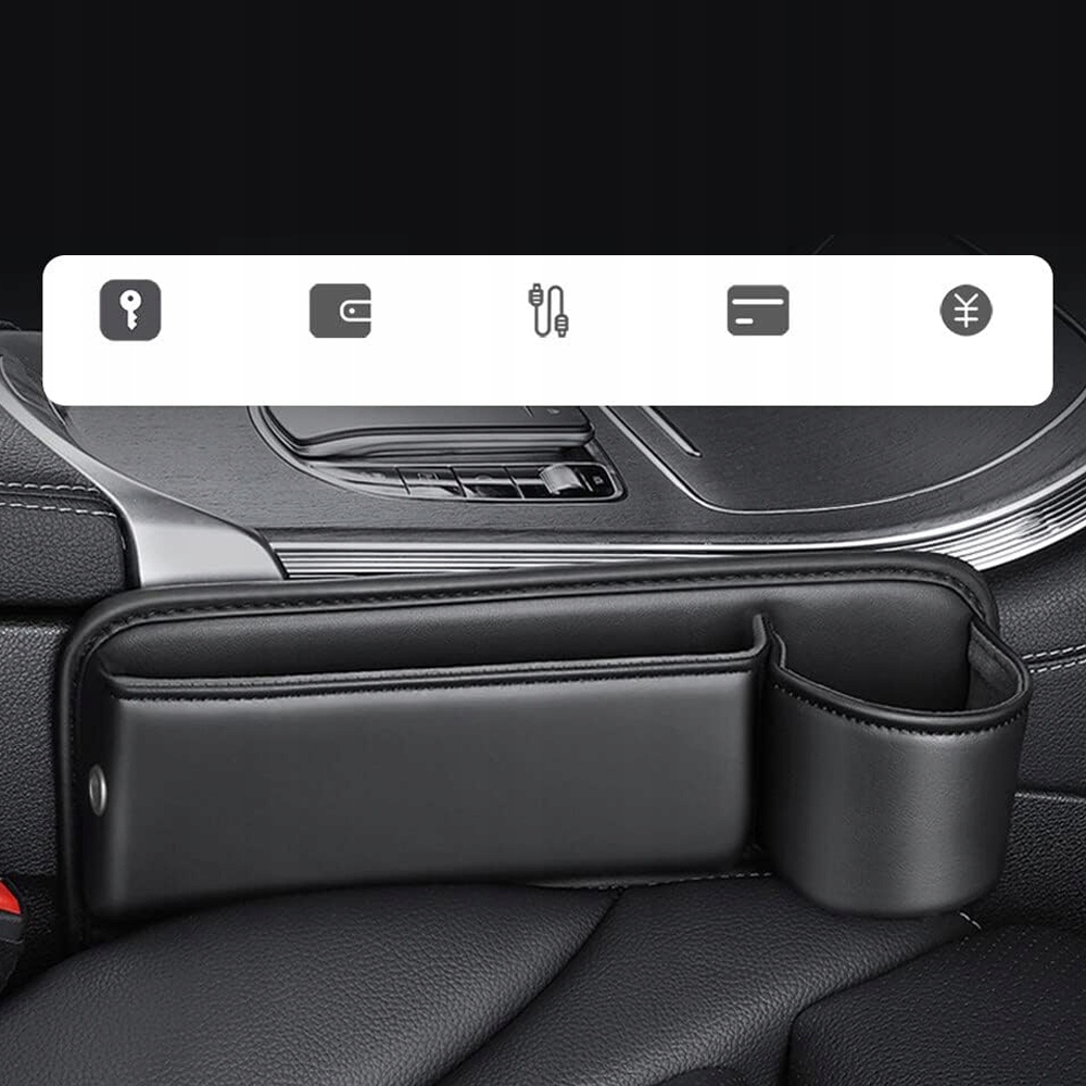 SCHOWEK ORGANIZER SKÓRZANY SAMOCHODOWY MIĘDZY FOTEL PRAWY UCHWYT KUBEK