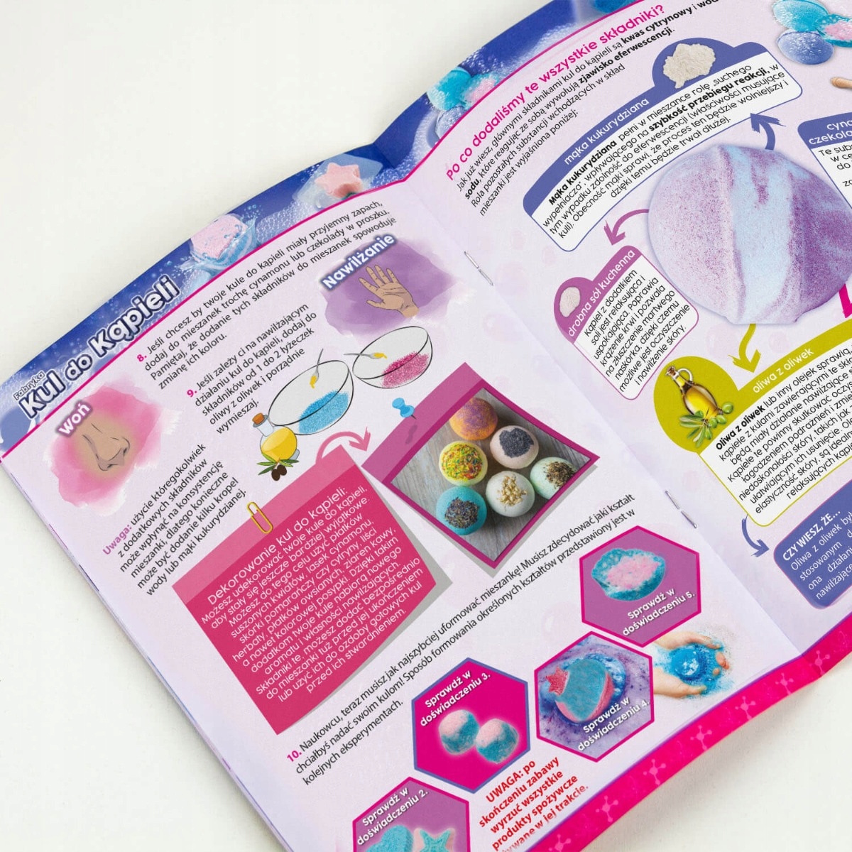 С помощью Фабрики бомб для ванн Science4You вы научитесь что такое бомбочки для ванны, кто их изобрел, когда и при чем здесь аспирин общий? Действительно ли шары должны иметь сферическую форму? Изучите историю ванна, как она выглядела в древние времена, когда к ней относились как к светское мероприятие и когда оно было запрещено. Узнайте, из чего они состоят шарики, какие у них свойства, цвета и запахи. Познакомьтесь с научной стороной пуль, какие химические реакции в них происходят и что заставляет шарики пузыриться в воде – узнать о явлении шипучести. Узнайте, какие ингредиенты следует добавлять в шарики для изменения их цвета, запаха и свойств. Наблюдайте, какое влияние на на вашу кожу влияют бомбочки для ванны. Примите научную задачу и Наблюдайте за влиянием температуры воды на растворение шариков. Чтобы выполнение: 6 экспериментов.