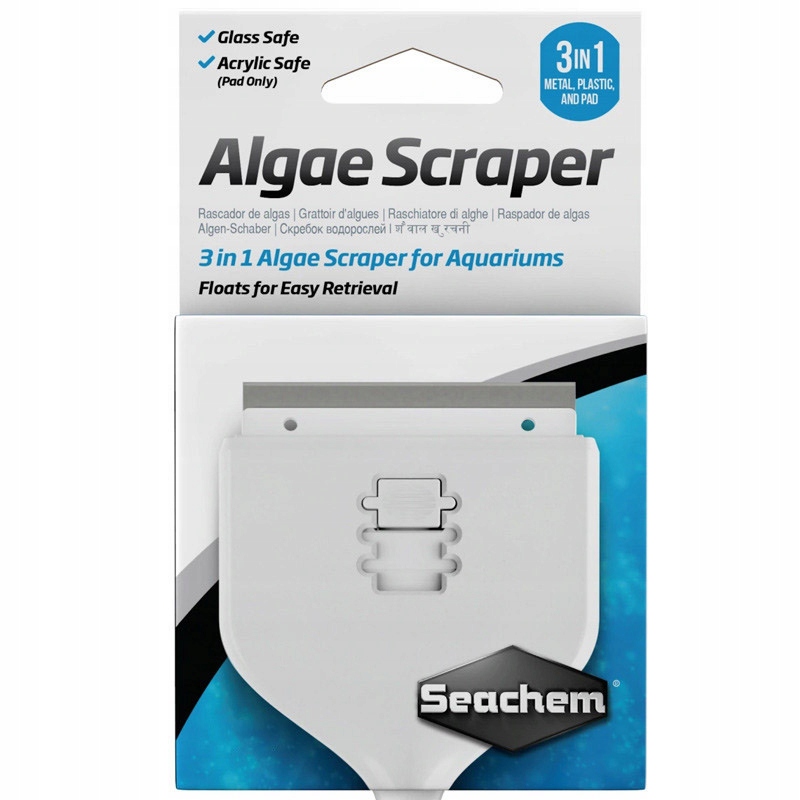 Скребок Seachem Algae Scraper был разработан с учетом универсальности. Благодаря трем выдвижным лезвиям: металлическому, пластиковому и мягкой подушечке он подходит для стеклянных и акриловых аквариумов.