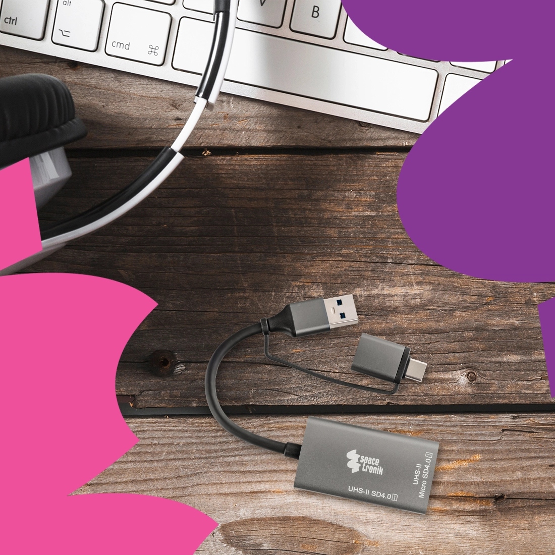 SD Microsd Memory Card Reader USB-C USB Pendrive-A Adapter Spacetronik