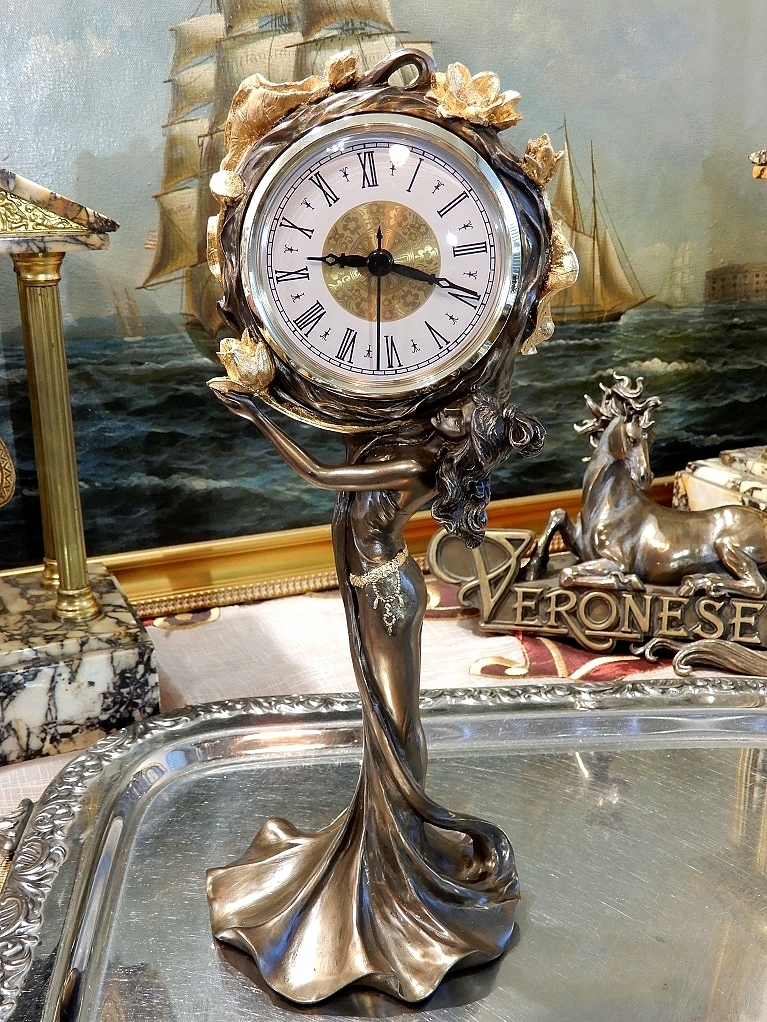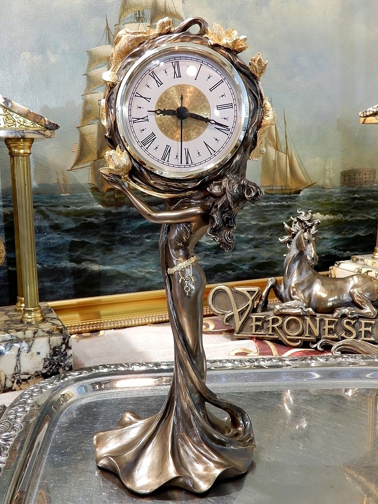 Приглашаю Вас купить замечательные часы в объятиях красивой, стройной женщины, выполненные в стиле классического модерна. В натуре изделие выглядит гораздо лучше. Бренд Veronese гарантирует качество и внешний вид. . Вся вещь изготовлена из конгломерата минералов и смол (полирезина), покрыта латунью, расписана вручную.Ваша преданность делу значительно повысит привлекательность часов, они могут стать отличной идеей для оригинального подарка.