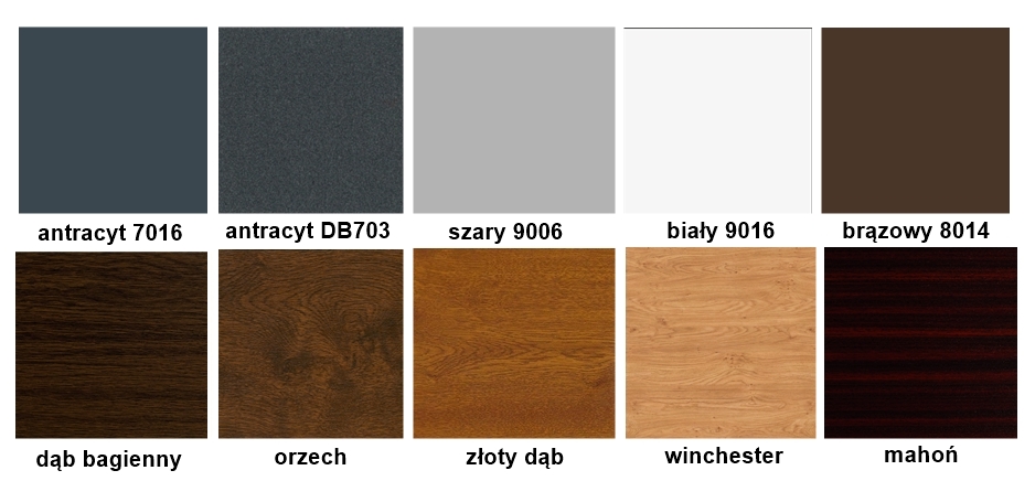 Цвета: Золотой дуб - гайка - красное дерево - антрацит 7016 (Smoothgrain - Smooth/Anthracite Structure в структуре песочницы))