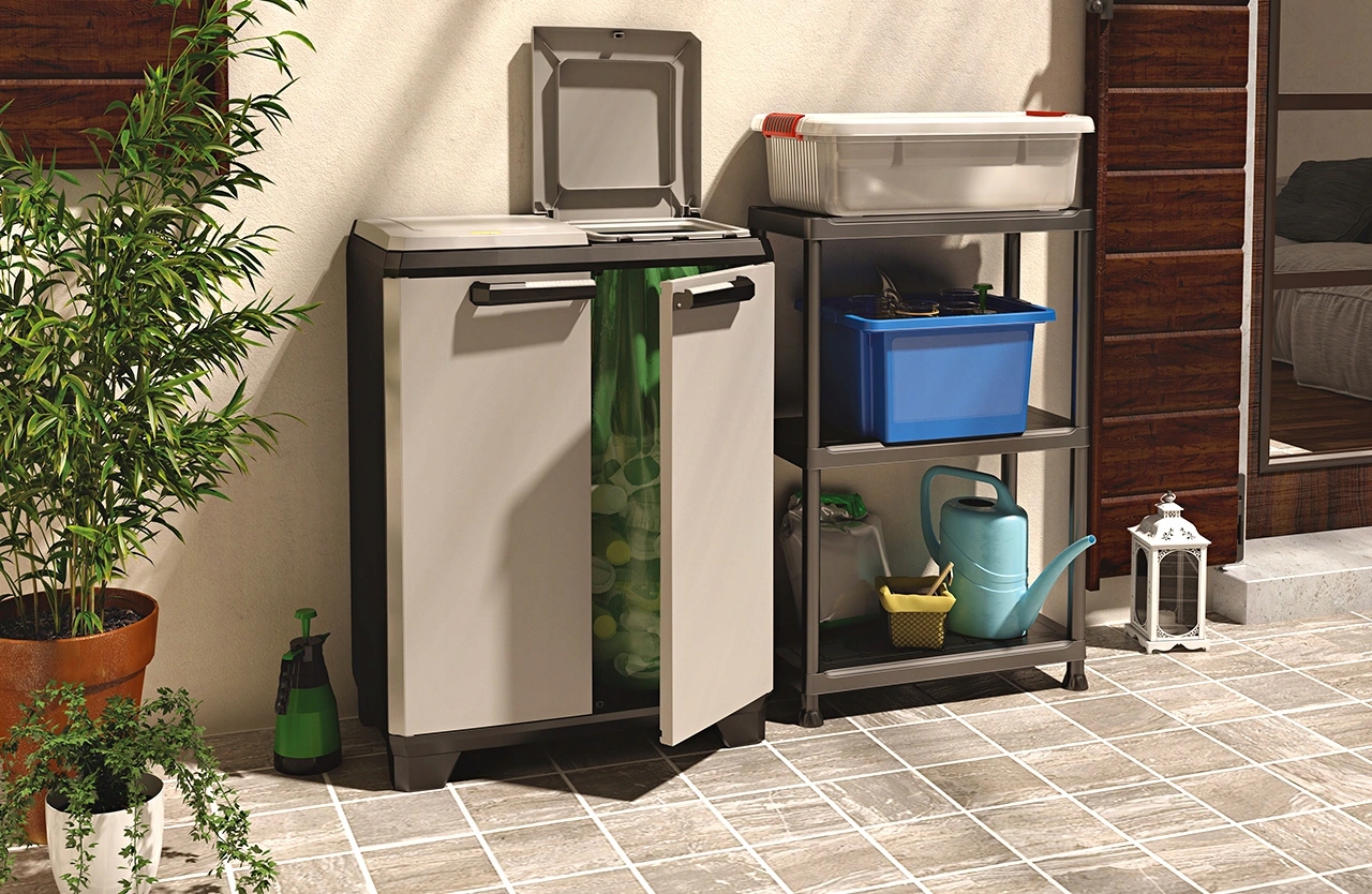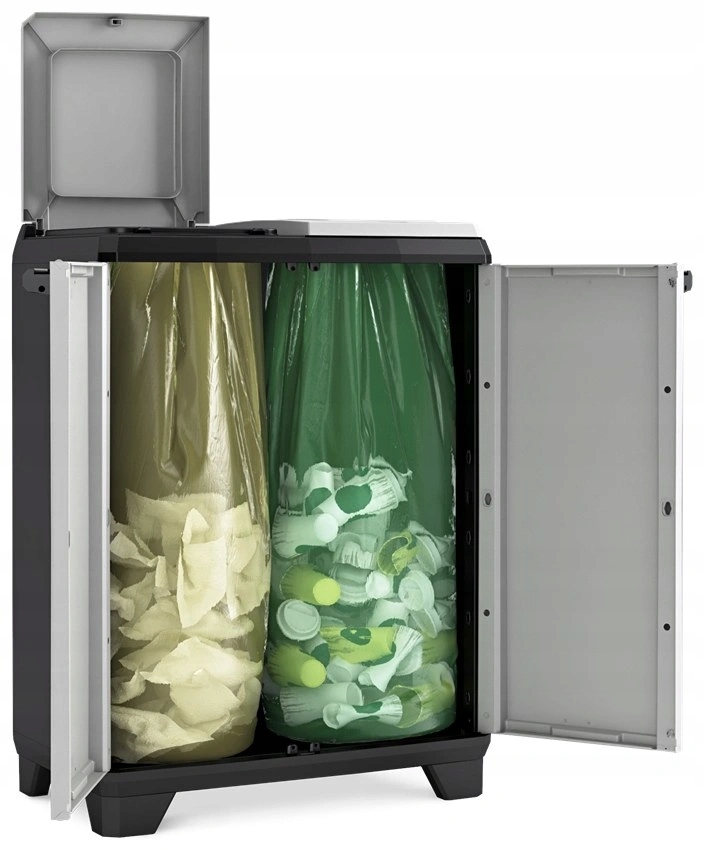 Шкаф для сортировки мусора Split Premium облегчает сортировку мусора дома, без беспорядка и неприятных запахов. Эта модель идеальна для использования на открытом воздухе или перед домом. Корпус изготовлен из пластика высочайшего качества, что обеспечивает долговечность и надежность. В нем могут разместиться две сумки максимальным объемом 110 литров. Что немаловажно, они поддерживаются специальной рамкой, которая не позволяет им самостоятельно соскальзывать. Данная модель оснащена системой PUSH, позволяющей легко и быстро открыть контейнер. Прочная конструкция, установленная на четырех прочных высоких ножках, облегчает уборку и поддержание чистоты под мебелью. Благодаря минималистской, простой форме и спокойным цветам шкаф для сортировки мусора Split Premium идеально впишется в любой домашний интерьер.