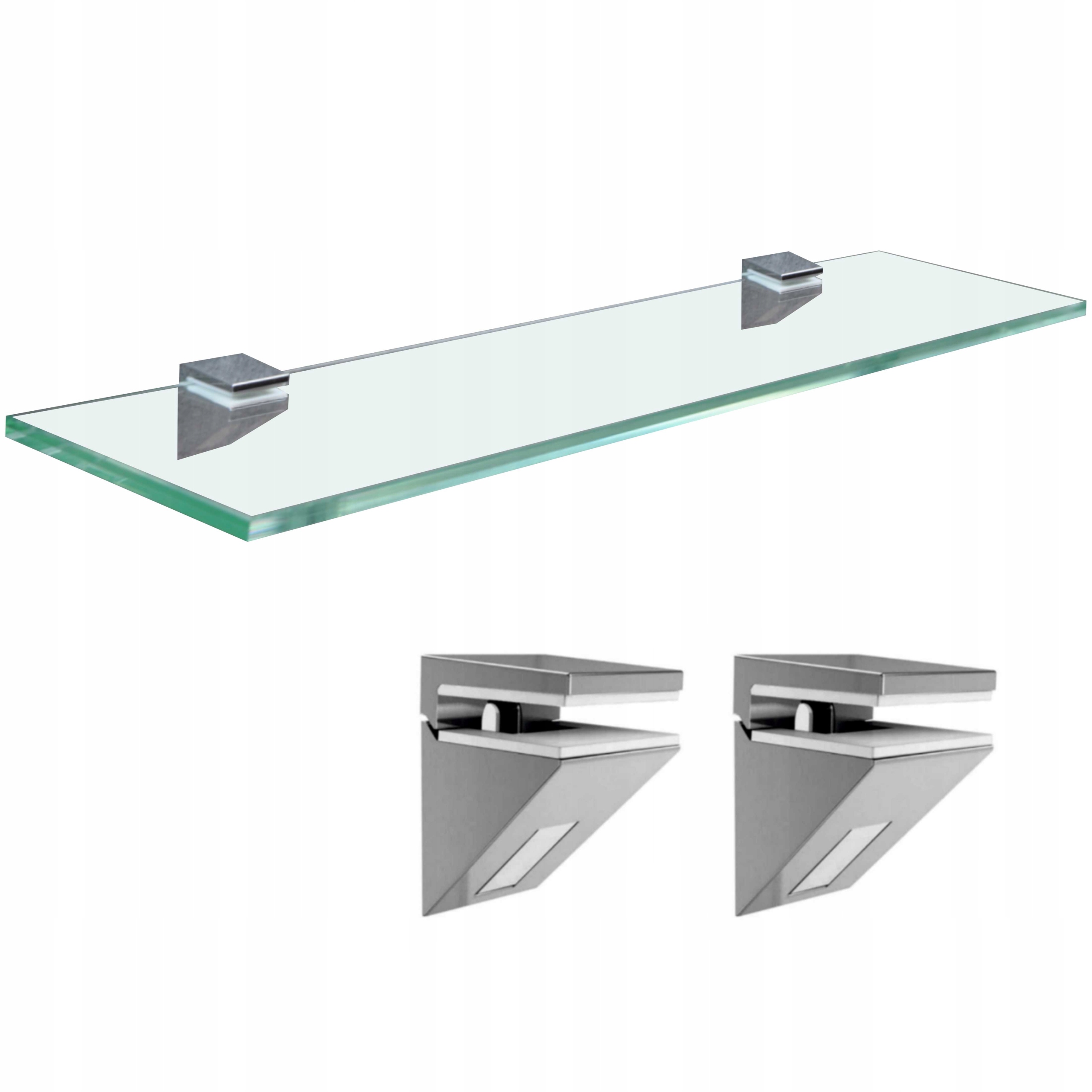 Полка стеклянная 100х12см с крепежными кронштейнами цвет хром серебро глянец