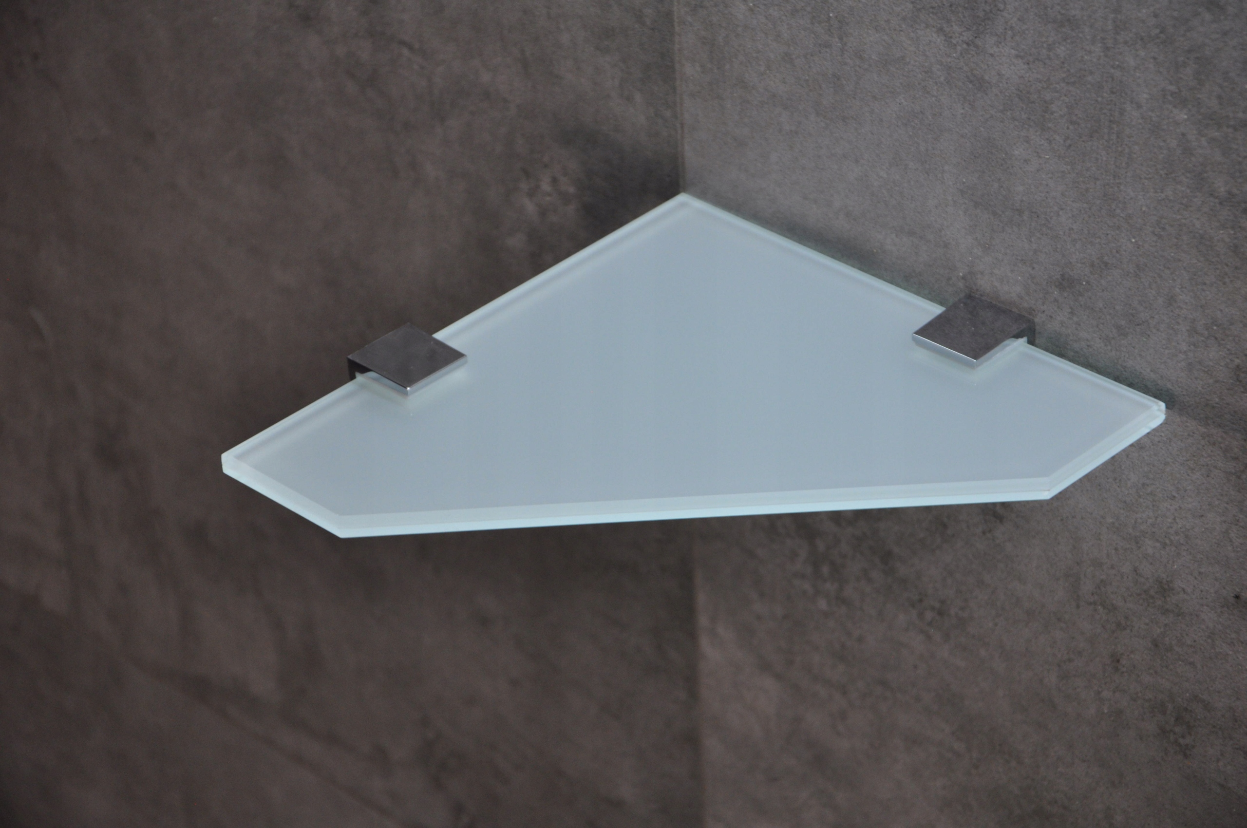 Полка стеклянная угловая 25х25см с кронштейнами, цвет серебристый хром