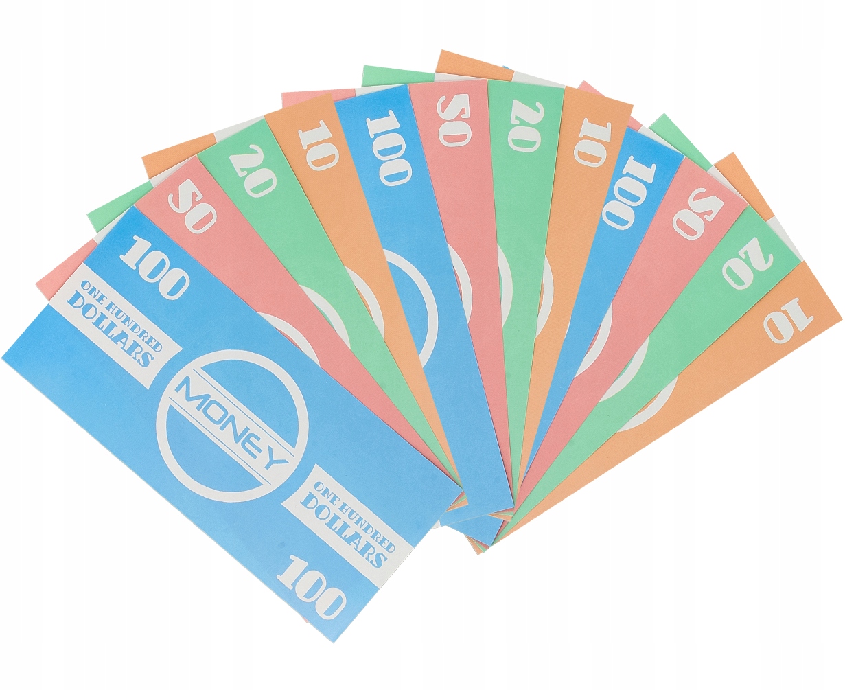 В копилке 12 игрушечных купюр, по 3 каждого номинала - 100, 50, 20, 10 долларов