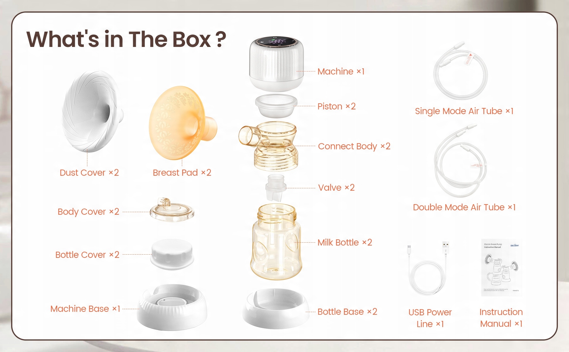 Этот электрический двойной насос молочной железы был специально разработан для матерей для грудного вскармливания; Моделируйте ритм всасывания груди ребенка через технологию преобразования частоты микрокомпьютера. 9 уровней настройки мощности всасывания; Массаж, сосание молока, моделирование сосания молока, отдельный насос, двойной насос, соски, 6 функциональных переключателей
