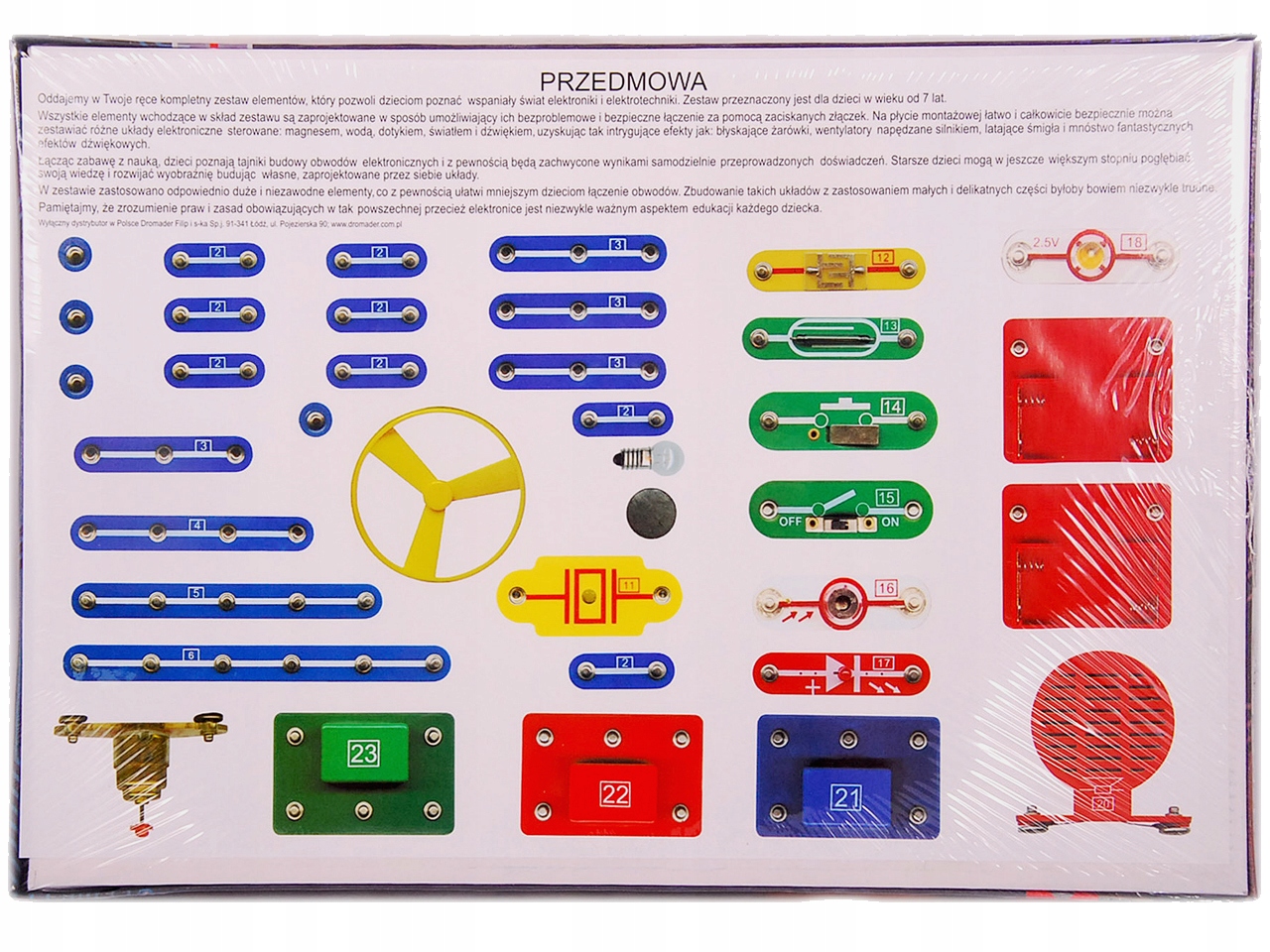 По подробным инструкциям на польском языке ребенок будет собирать электронные наборы простым способом, например, собирать кубики, и с любопытством будет самостоятельно проводить эксперименты.