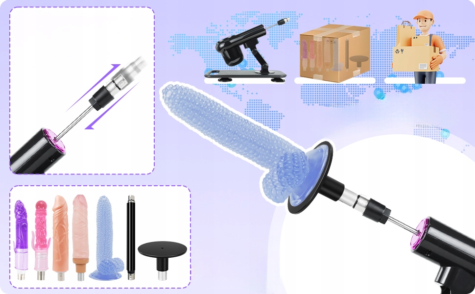 - Различные наконечники/"члены" для разных впечатлений - одно устройство, много впечатлений.