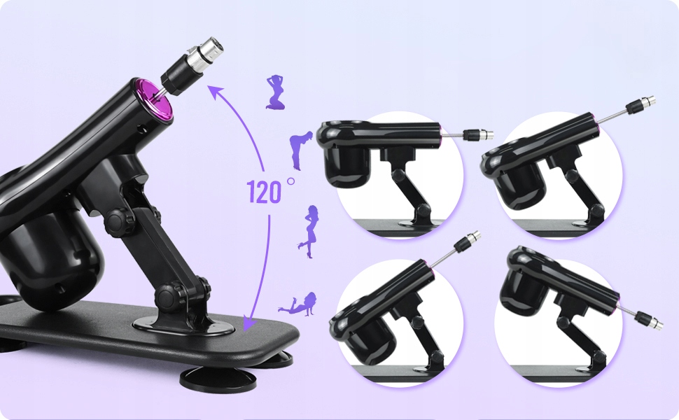 Устройство было разработано с учетом безопасности тела — оно изготовлено из прочного АБС-пластика, металла и ТПЭ. Устойчивое основание с присосками надежно удерживает машину на гладких поверхностях, а регулируемый кронштейн с ручкой позволяет установить рабочий угол примерно до 85°, чтобы легко выбрать наиболее удобное положение.