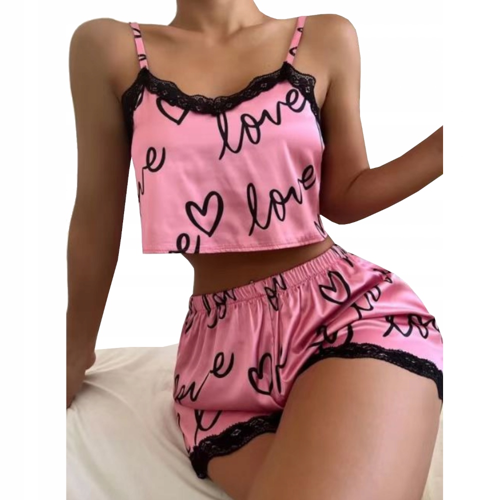 АТЛАСНАЯ ПИЖАМА, УКРАШЕННАЯ ЧЕРНЫМ КРУЖЕВОМ