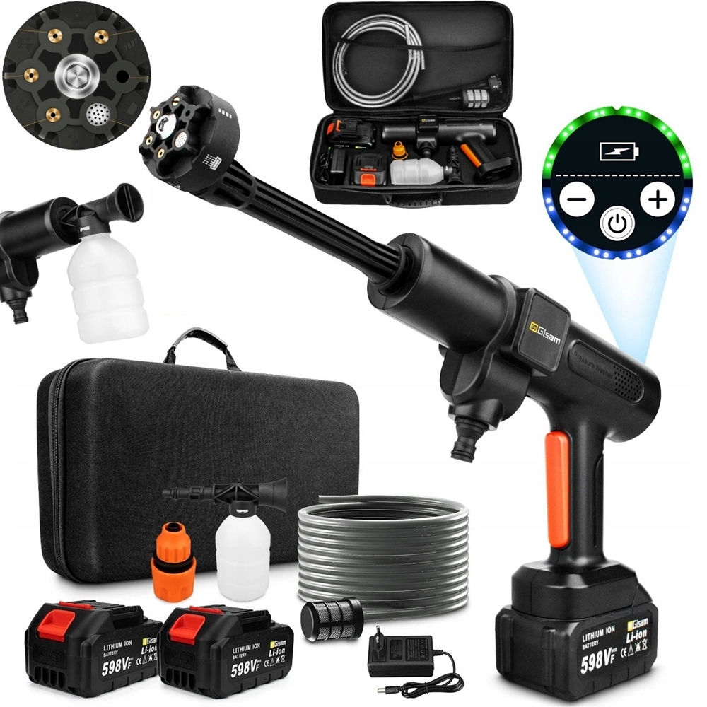 ⭐akumulator Стиральная машина, беспроводная стиральная машина с давлением до 200 бар, с 2 x 3000 батарей, пенопластовой шайбой, многофункциональная 6 в 1 сопла и вращающийся сопла 180 °, широко используемые для очистки автомобилей, садовой мебели и полива.