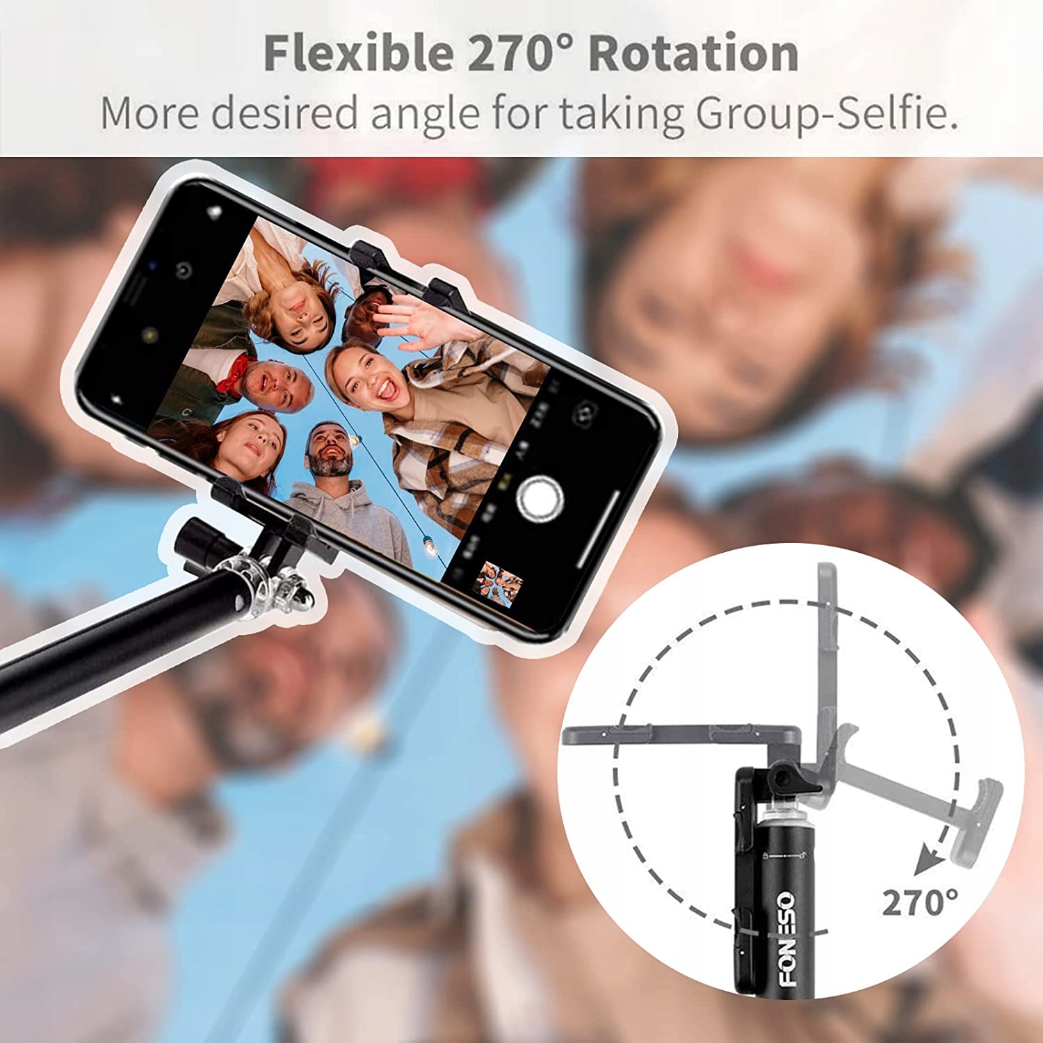 - 【Настройка к самому красивому углу】 Вы можете повернуть держатель мобильного телефона на 270 градусов вперед и назад. Вы можете адаптировать свой самый красивый фотогол в соответствии с вашими потребностями. Это самая широкая передняя и задняя наклонная селфи -палка на рынке.