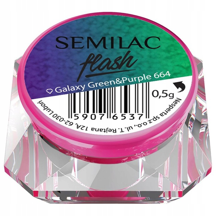 Semilac Flash Galaxy Green & Purple 664 Пыльца ногтей Нерегулярная галактика, вращающаяся вокруг дороги. Его зелено-фиолетовое свечение легко видно для наблюдателей в северном полушарии. Он хорошо связан с другими оттенками галактики, но сила сияния обеспечивает его удовлетворительное появление в одиночестве. Эта пыльца для ногтей Semilac - сильный игрок - стоит иметь в нем вашего друга!