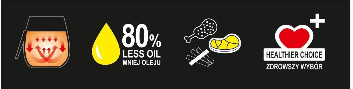 - Даже на 80 % меньше жира чем в случае стандартной фритюрницы.