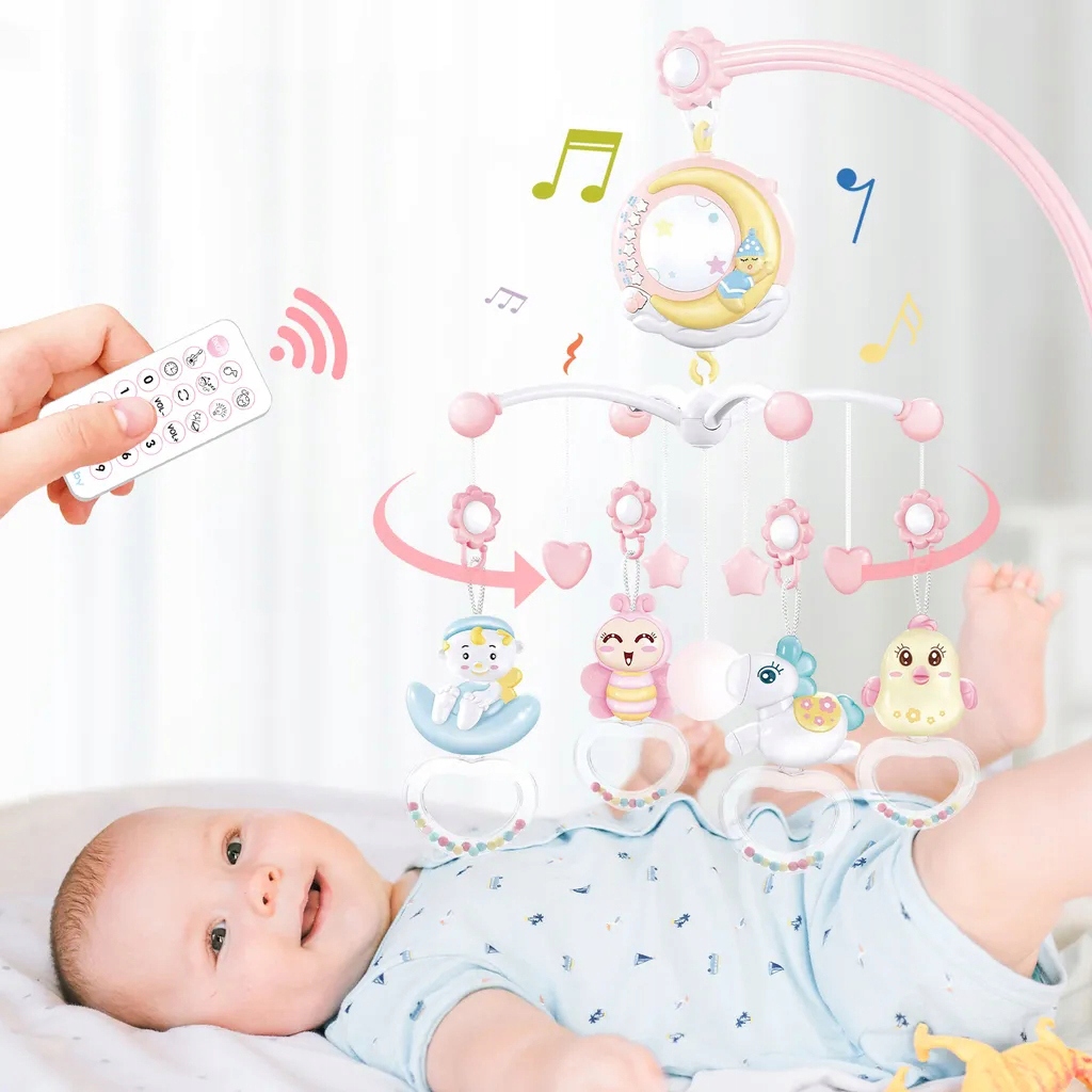 - 🪀【Простота в использовании】 Простота установки и простые в использовании функции. Всеми действиями можно управлять с помощью пульта дистанционного управления. Также мы дарим вам отвертку в подарок. Надеюсь, у вас получится собрать мобиль для кроватки.