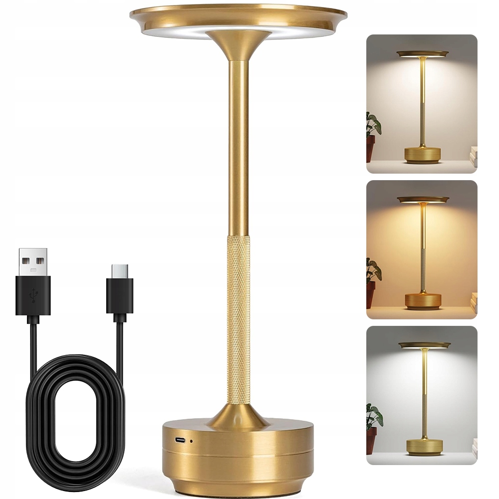 СЕНСОРНАЯ НАСТОЛЬНАЯ ЛАМПА 3 ЦВЕТА CCT, ЗОЛОТО, БЕСПРОВОДНАЯ 2600 МАЧ