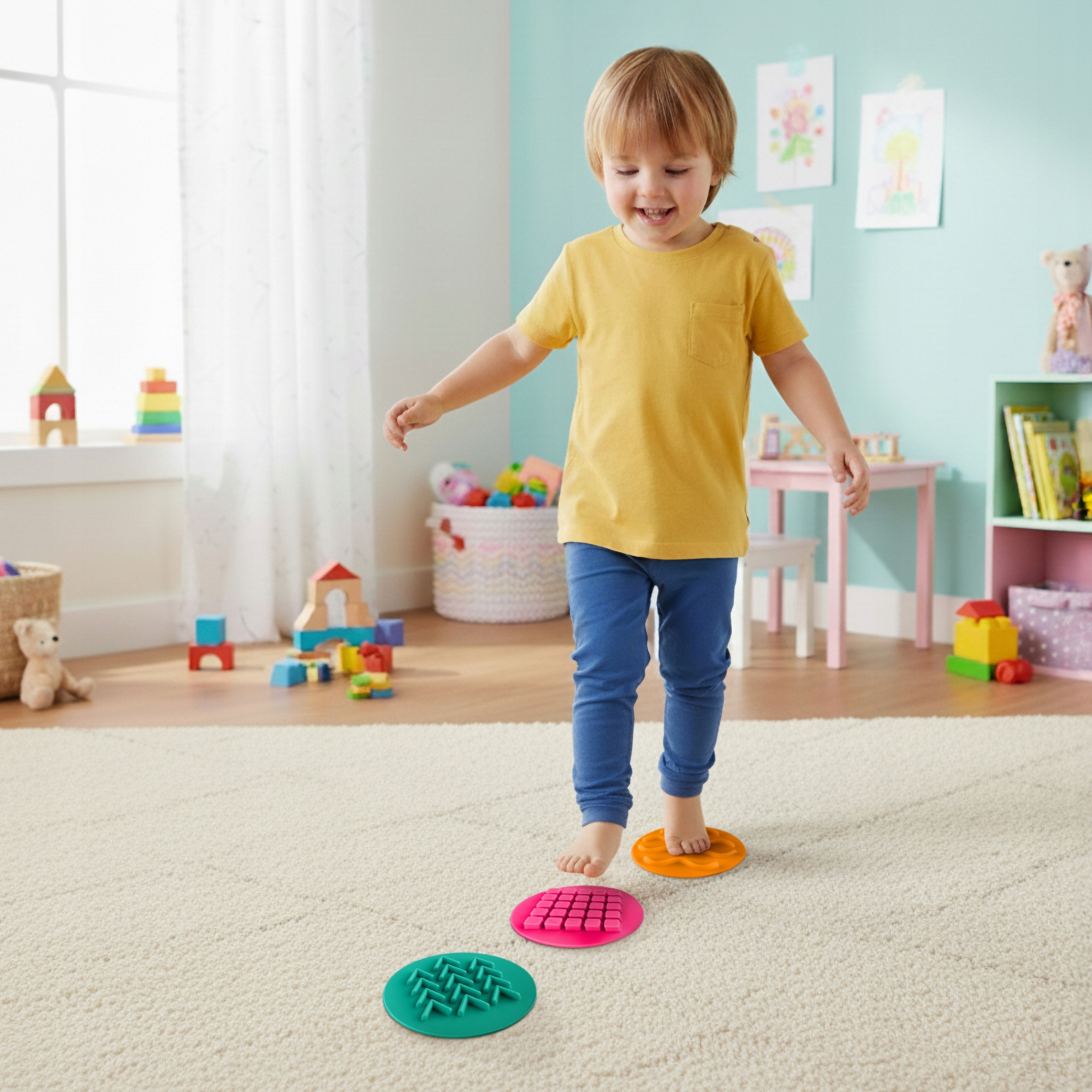 В детской сенсорные диски для детей станут безопасным инструментом для освоения новых раздражителей. С их помощью малыши изучают новые текстуры и учатся реагировать на прикосновения.