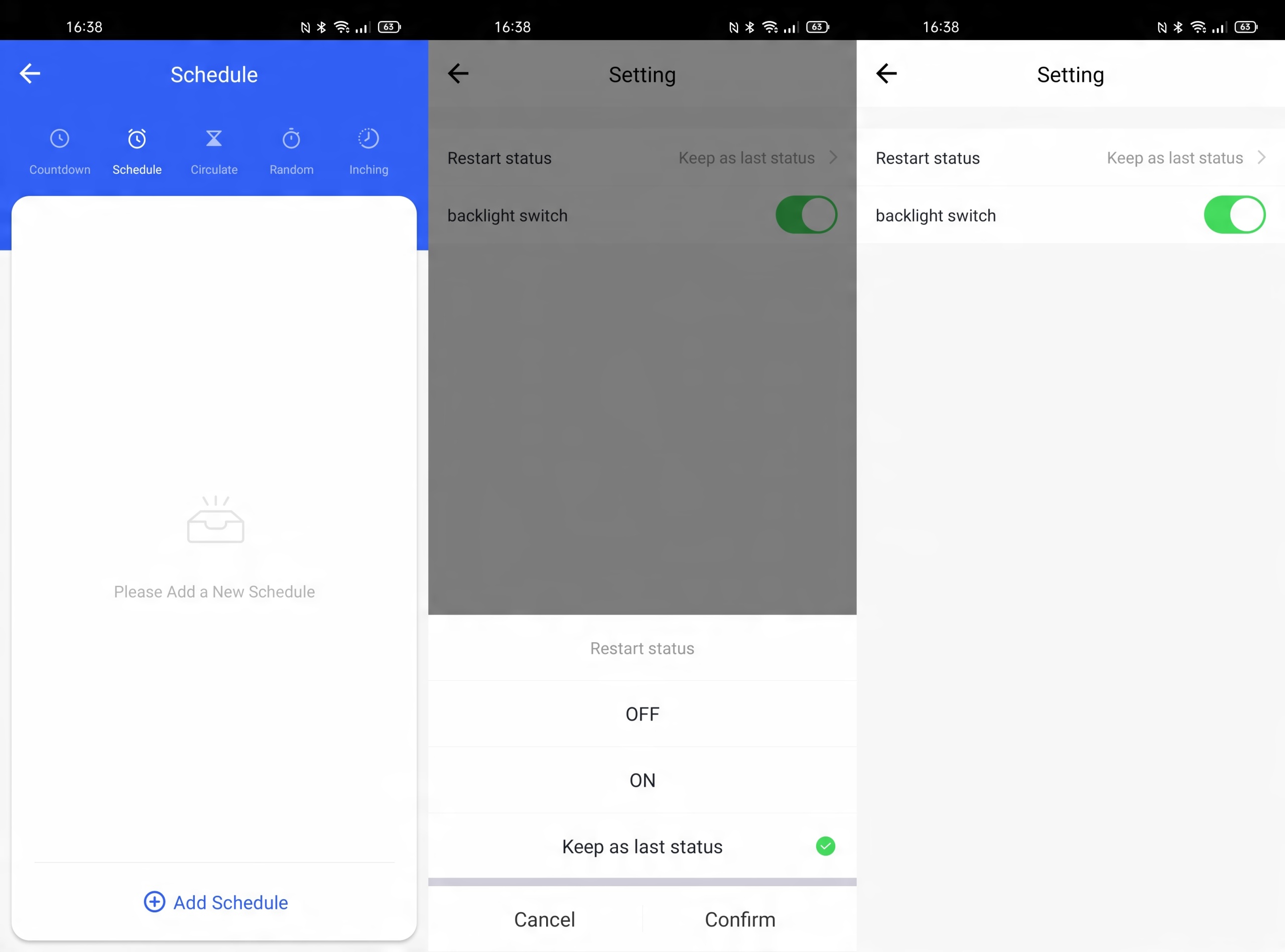 - работа по расписанию - можно установить время автоматического включения и выключения освещения в зависимости от времени и дня недели