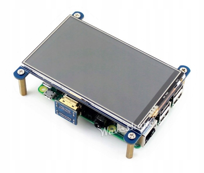 Сенсорный экран Waveshare, резистивный 4 дюйма для Raspberry Pi с разрешением 800 x 480 пикселей. Работает с любой 40-контактной версией Raspberry Pi. Через разъем HDMI и контакты GPIO.