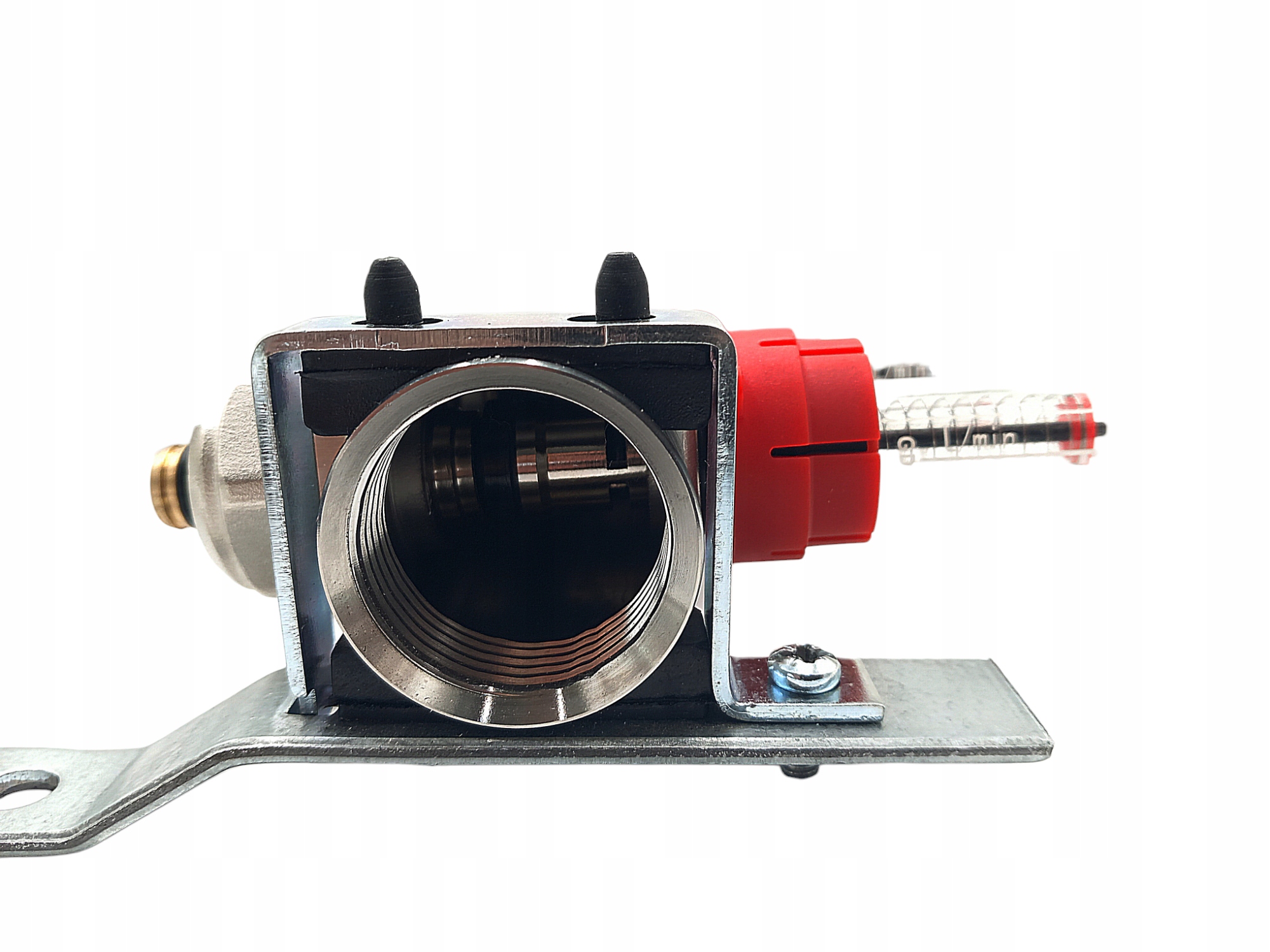 Ротаметр, также называемый регулятором расхода теплого пола, используется на распределительной балке подачи. Ротаметры используются для точного регулирования контуров теплого пола. Вопреки внешнему виду, правильное регулирование потоков и эксплуатация нашего теплого пола – трудоемкая задача. Чтобы наша установка работала эффективно, необходимо правильно регулировать потоки. Сначала откручиваем терморегулирующие клапаны на обратной балке, а затем ротаметр, сняв красный фиксатор, позволяет увеличить или уменьшить расход воды. Процесс регулирования включает уменьшение расхода в более коротких контурах (с меньшим сопротивлением потоку) и увеличение расхода в более длинных контурах (с более высоким сопротивлением). Расходомер имеет диапазон от 0 до 5 л/мин, но опыт показывает, что этот диапазон имеет значительный запас, ведь достигаемые значения в наших установках составляют примерно 1 - 1,5 л/мин.
