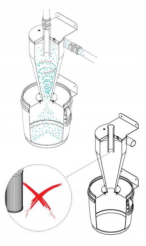 Циклонный сепаратор Turbix спроектирован как фильтр предварительной очистки, который следует устанавливать перед подключением к основным фильтрам или компактному центральному блоку пылесоса, чтобы он мог первым улавливать загрязнения из всасывающей системы.< /п>