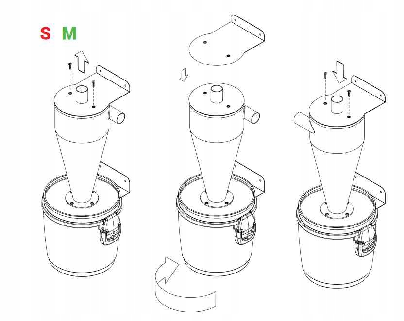 Сепаратор следует устанавливать так, чтобы пылесборник находился на высоте примерно 10 см от земли, чтобы обеспечить удобное опорожнение.