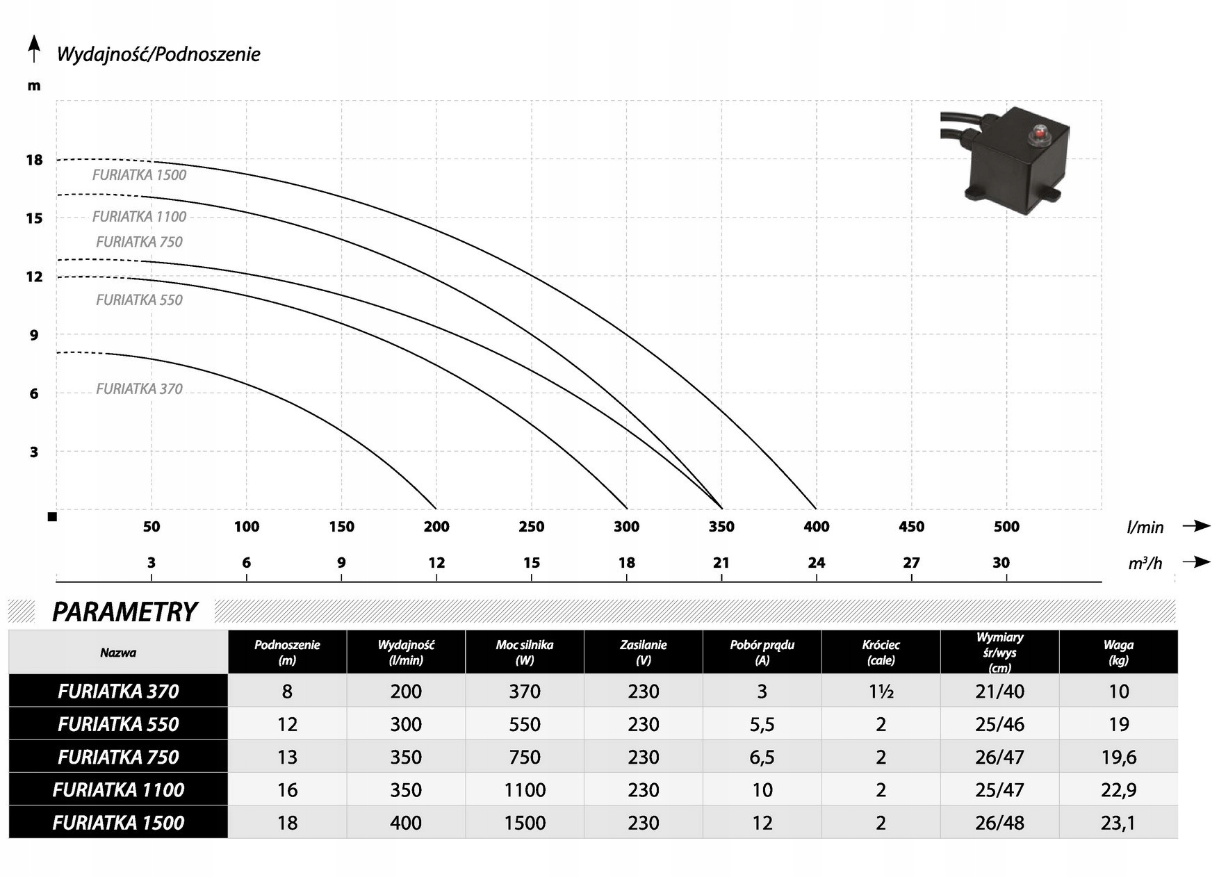 Фуриатки оснащены поплавковый выключатель, обеспечивающий автоматическую работу устройства. Для обеспечения безотказной работы насосы оснащены защитой от перегрузки, установленной на кабеле.