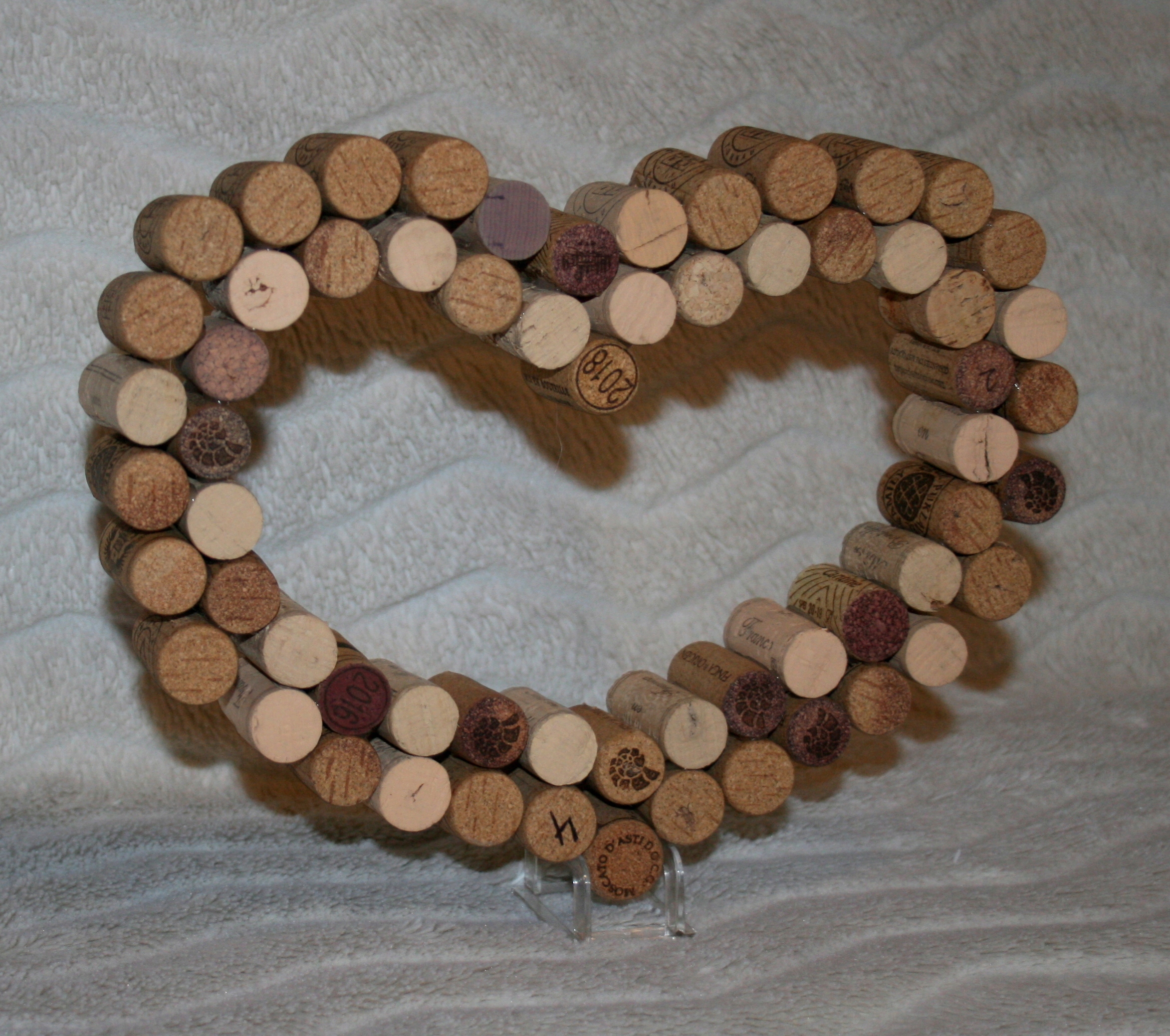 Сердце ручной работы из пробок для вина и шампанского со специальной подставкой, позволяющей разместить украшение вертикально в любом месте.