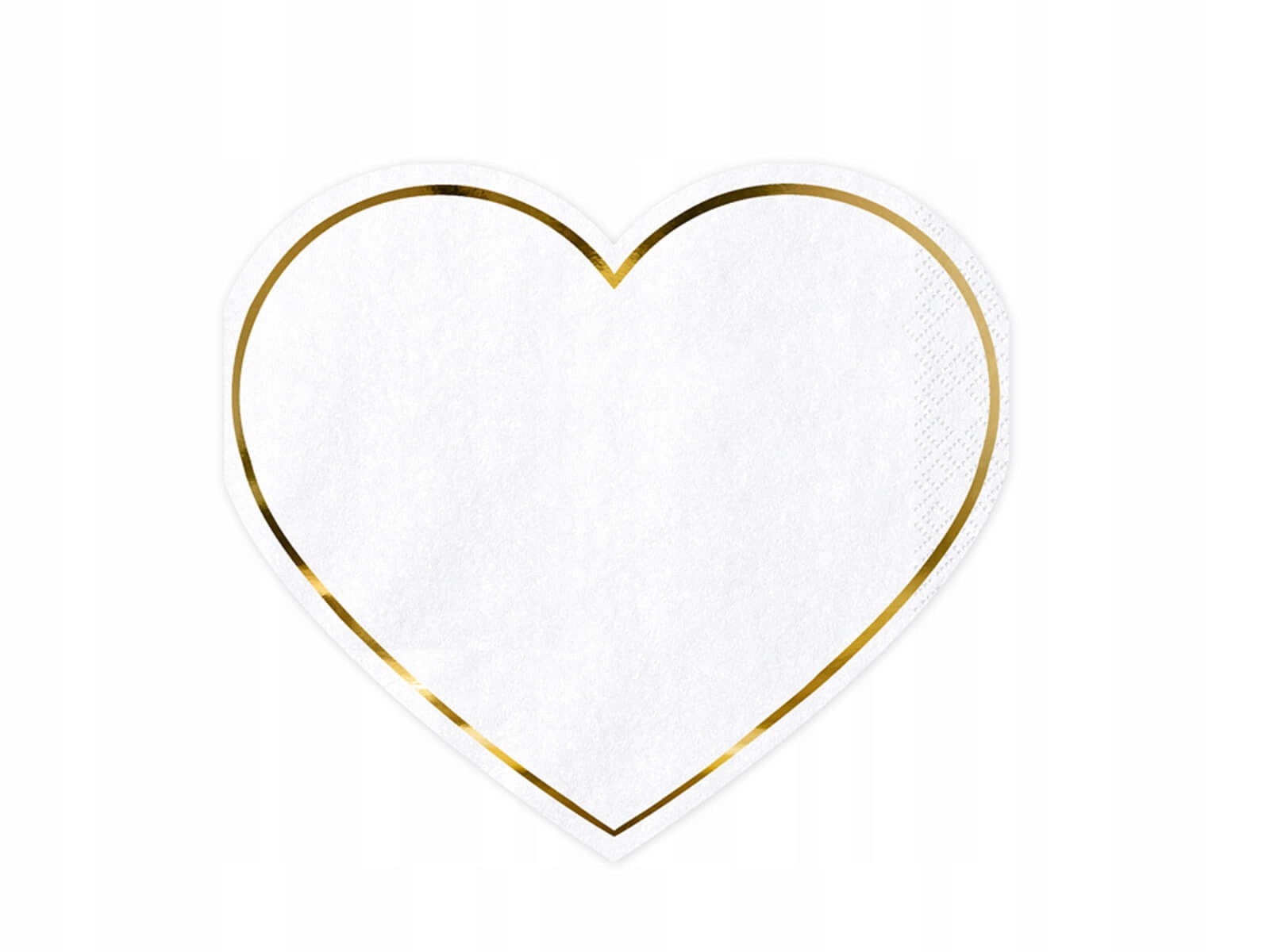 Бумажные салфетки в форме сердца белого цвета с металлизированным золотистым принтом, размеры в разложенном виде: ок. 28,5 х 25 см, размеры в сложенном виде ок. . 14,5 х 12,5 см. В 1 упаковке содержится 20 штук.