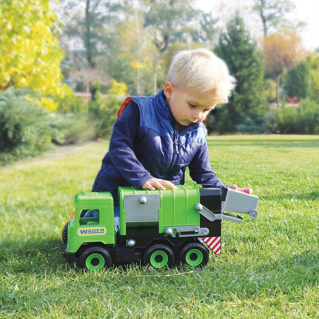 СРЕДНИЙ ГРУЗОВИК ЗЕЛЕНЫЙ МУСОРОВОЗ – БОЛЬШОЙ НАДЕЖНЫЙ АВТОМОБИЛЬ ДЛЯ ИГР ДЕТЕЙ