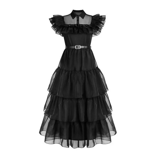 Уникальное платье, в котором внимание к деталям выходит на новый уровень. Это не просто одежда, это настоящее произведение искусства, вдохновленное фильмом Среда. В этом платье каждый элемент прорисован с невероятной точностью, что создает точное воспроизведение культового стиля.