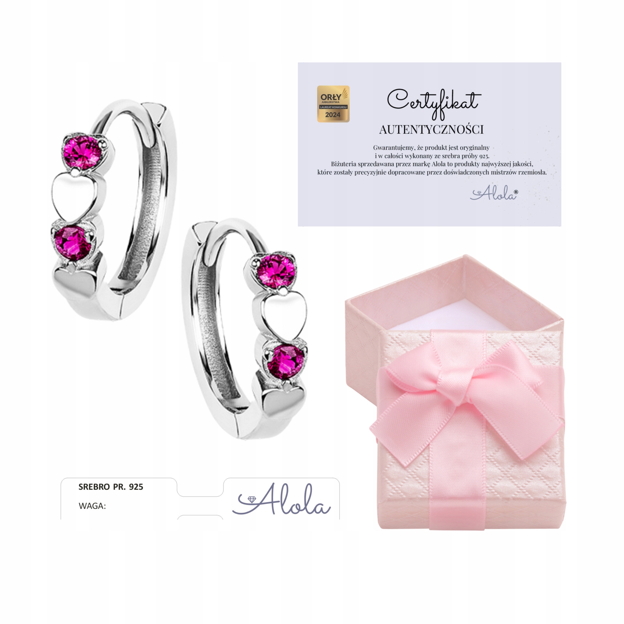 ДЕТСКИЕ СЕРЕБРЯНЫЕ СЕРЬГИ, КОЛЬЦА С РУБИНОМ СЕРДЦЕ, ЗАМОК 925 С РОДИЕВЫМ ПОКРЫТИЕМ