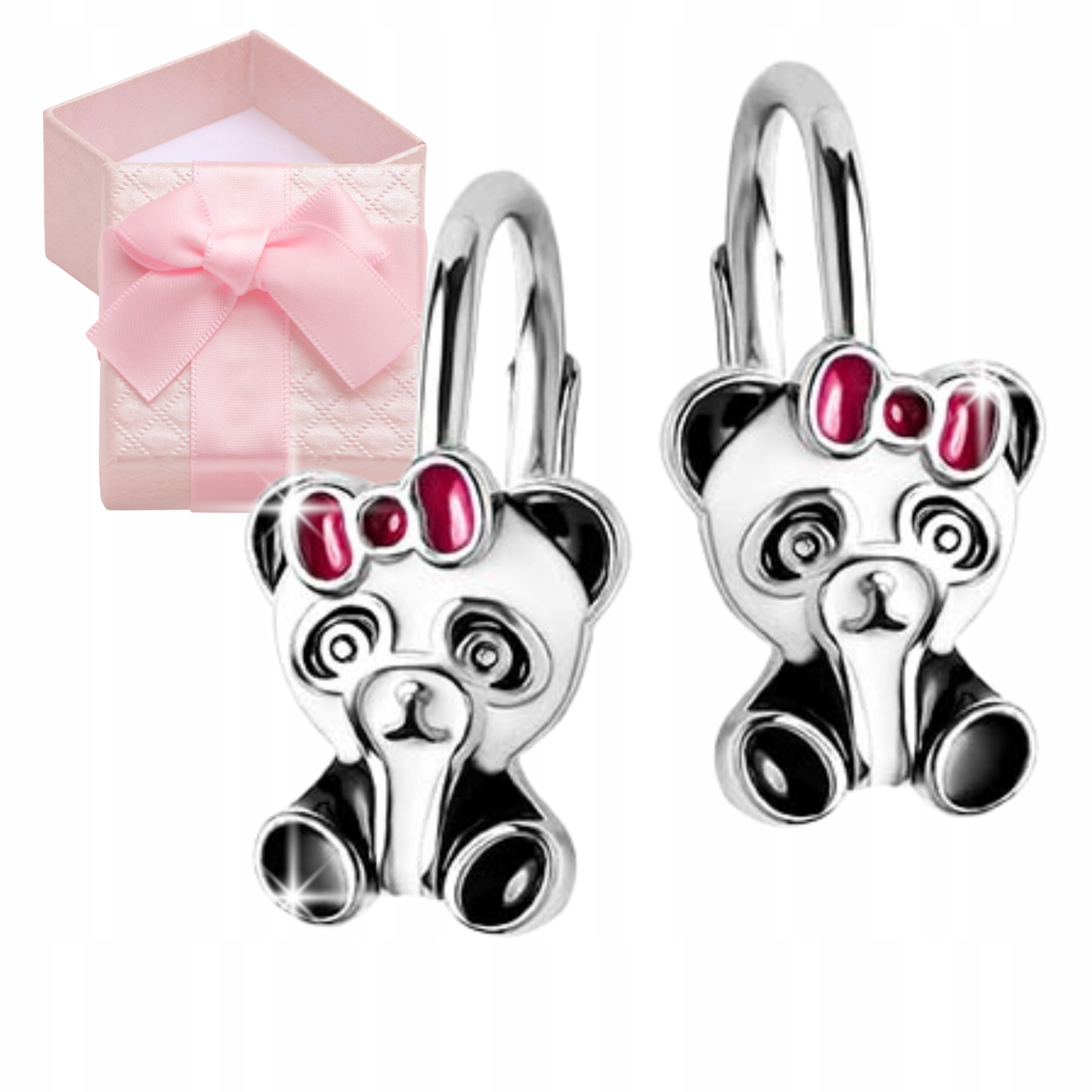 СЕРЕЖКИ СРІБНІ ВЕДМЕДИКИ ПАНДА З БАНТОМ АНГЛІЙСЬКА ЗАСТІБКА ПАНДИ 925