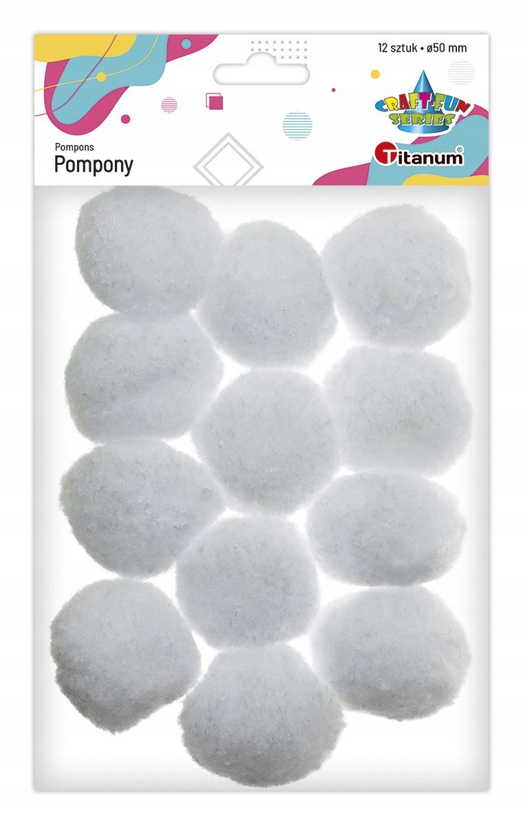 Серия Craft-Fun, белые помпоны, 50 мм, 12 шт. Титан