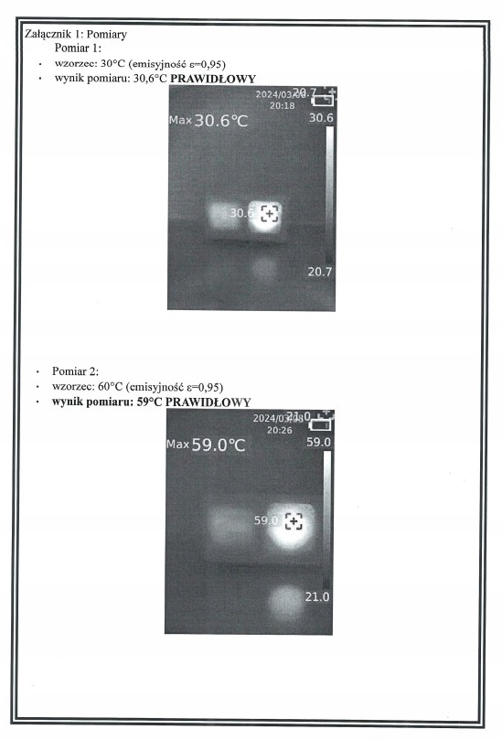 - протокол содержит фотографии с температурой, зафиксированной во время измерения
