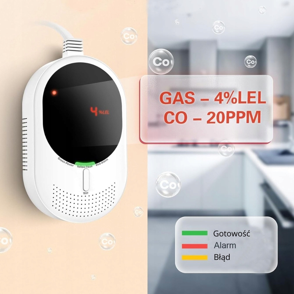 В одном устройстве вы получаете датчик угарного газа (угарного газа), природного газа и СУГ, оснащенный большим ЖК-дисплеем и WiFi-соединением с приложением Smart Life/Tuya Smart.