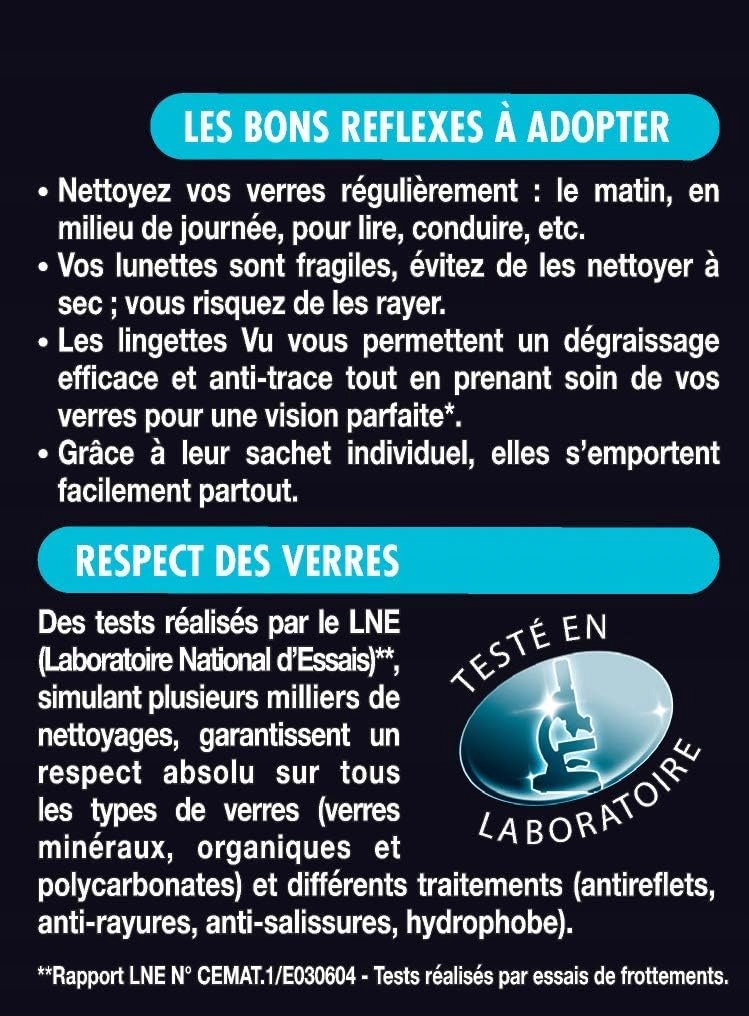 Благодаря антистатической формуле, препятствующей запотеванию, отпечаткам пальцев и статике, VU обезжиривает и очищает отпечатки пальцев и грязь. В мгновение ока ваши линзы вновь обретут свой стойкий блеск.