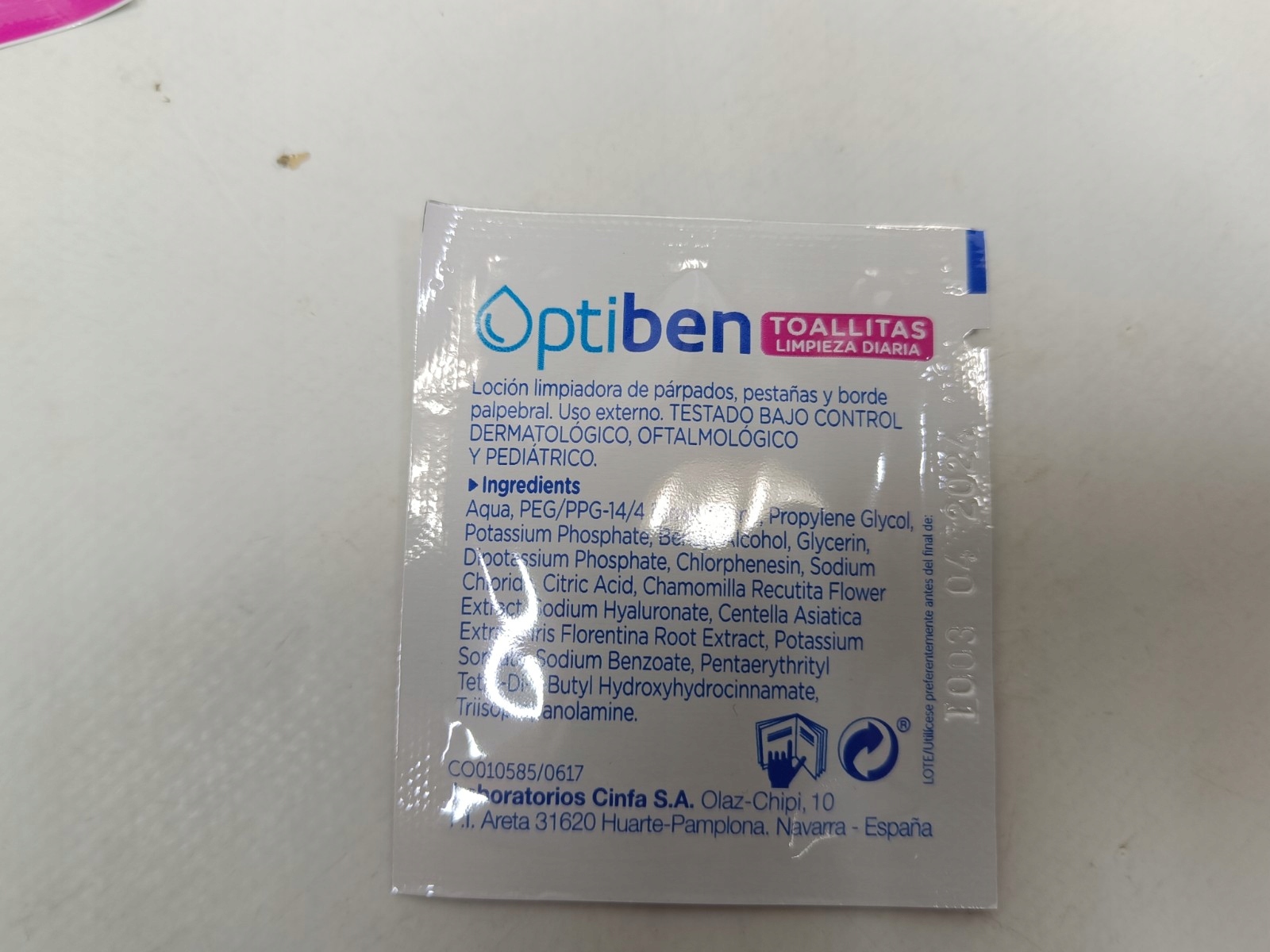 OPTIBEN 30 САЛФЕТКИ В ОДНОЙ ДОЗЕ Индивидуальные гигиенические офтальмологические салфетки, предназначенные для очистки области вокруг глаз. Салфетки Optiben 30 — это набор из 30 индивидуально упакованных салфеток для большей гигиены, которые очищают веки, ресницы и края век, не вызывая раздражения. Благодаря формату разовой дозы мы всегда можем иметь их при себе. Подходит для самой чувствительной кожи. В его состав входят гиалуроновая кислота, готу кола, ромашка и флорентийский ирис. Они очищают, сохраняя pH кожи. Этот продукт представлен в формате 30 салфеток. КОМУ РЕКОМЕНДУЕТСЯ? Для взрослых, которым нужна оптимальная ежедневная очистка области вокруг глаз. ИНСТРУКЦИЯ ПО ПРИМЕНЕНИЮ Легкими движениями удалим грязь с века наружу. СОВЕТ ОТ ВАШЕГО ФАРМАЦЕВТА Хранить в сухом и прохладном месте. Их также можно использовать для снятия макияжа и с контактными линзами. Беречь от детей.