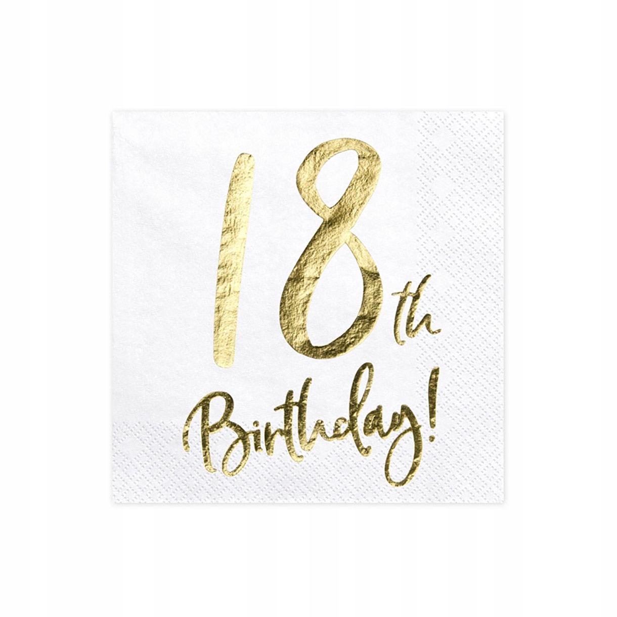 Салфетки белые бумажные с золотой надписью «18 лет».