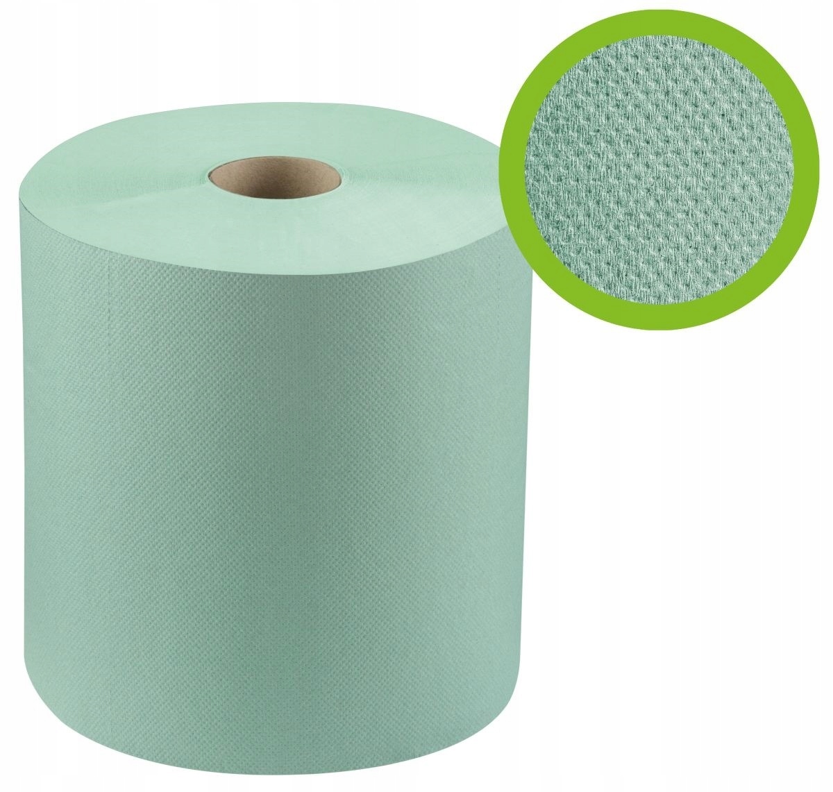 Бумажное полотенце однослойное, переработанная бумага, салфетка для протирки, в рулоне, высота 28 см, зеленое. >