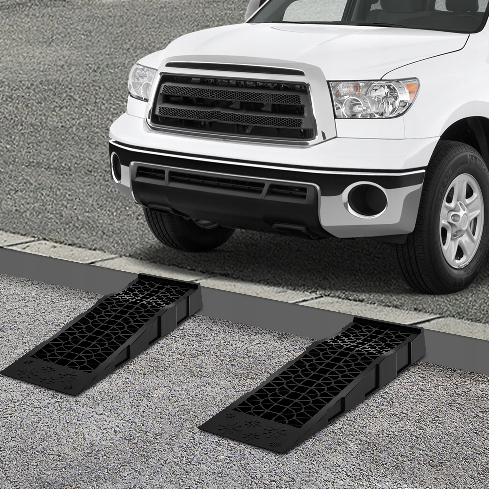 - Вдумчивый дизайн: более безопасные заряды понижены автомобили, а высота подъема 2,76 "подходит для гидравлического настройки подъема пола (не включенная в набор). Изогнутый верх остановит транспортные средства от скольжения вниз, а звучащий конец может предотвратить проезд через рампу через конец рампы.