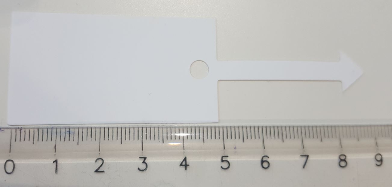 Подвеска имеет размер 9х3 см. Заполнить его можно ручкой или маркером. Он очень прочный.