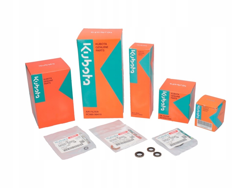 При заказе комплекта вы получаете: - масляный фильтр двигателя - воздушный фильтр двигателя (внутренняя и внешняя вставка) - фильтр гидравлического масла - топливный фильтр - уплотнения и шайбы, необходимые при замене фильтров. При замене фильтров не забывайте о штатных масло меняется согласно рекомендациям производителя. Конечно, на наших аукционах вы также можете купить оригинальные масла Kubota.