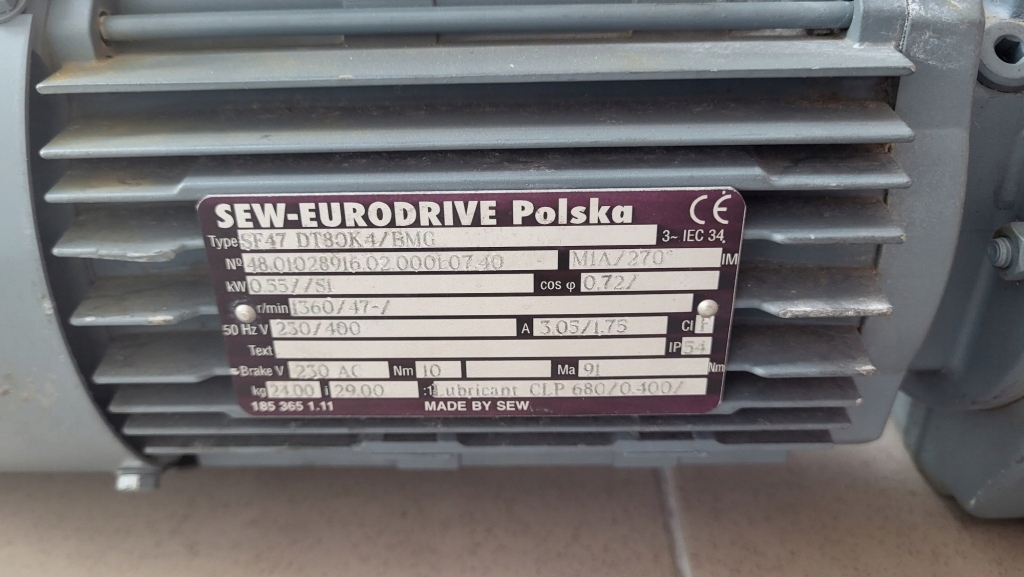 У меня ПРОДАЕТСЯ ЭЛЕКТРОДВИГАТЕЛЬ SEW SF47 BT80K4/BMG ОБОРУДОВАНИЕ Б/У, ПОЛНОСТЬЮ ФУНКЦИОНАЛЬНОЕ. НА НЕМ ЕСТЬ ГРЯЗИ, ЦАРАПИНЫ И МАЛЕНЬКИЕ ОТМЕТКИ ОТ ИСПОЛЬЗОВАНИЯ. СОСТОЯНИЕ ПРЕКРАСНО ВИДНО НА ФОТО, ДОБАВЛЕННЫХ НА АУКЦИОН. БОЛЬШЕ ИНФОРМАЦИИ НА САЙТЕ ПРОИЗВОДИТЕЛЯ.