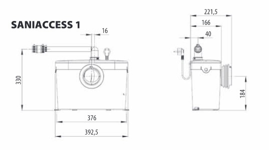 Устройство SANIACCESS® 1 представляет собой измельчитель унитаза с легким доступом к измельчающая часть (можно убрать заторы) и контрольная (система переключения). Риск засорения устройства снижен благодаря блестящей ножевой технике измельчения в «корзине» с доступом снаружи, с левой стороны. Особенно рекомендуется для небольших пабов и небольших заведений общественного питания, где простую неисправность необходимо быстро устранить самостоятельно.