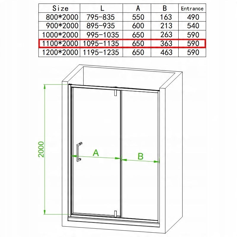 SH08D ДУШЕВАЯ ДВЕРЬ ЧЕРНАЯ 110 СМ 6 ММ