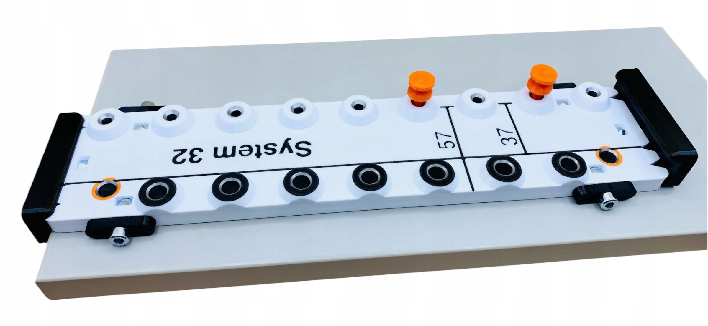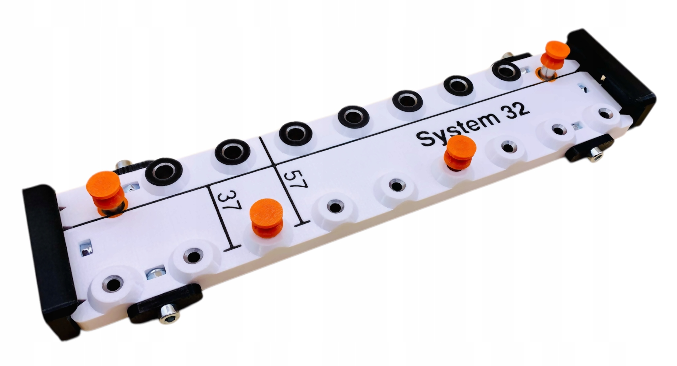 Система 32 — универсальный шаблон, дополняющий наш шаблон в виде угловой полосы (доступен на другом аукционе). Предназначен для сверления отверстий под регулируемые полки, конфирматы, штыри и направляющие различных производителей.