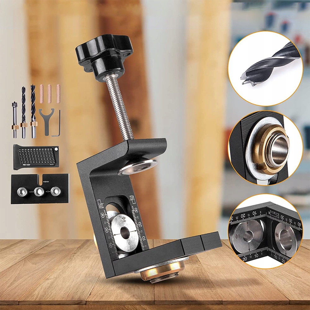 - Втулки из закаленной стали трех разных размеров (8 мм/10 мм/15 мм) позволяют быстро и легко точно сверлить.